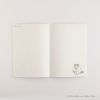 表裏どちらのイラストも楽しめるA5サイズの綴じノートです。ノートの中柄も愛らしいモブのイラストがあしらわれています。