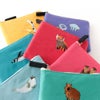 水族館、動物園の人気生物をかわいらしく描きおろしたシリーズ。動物部分に刺繍が施されてたがかわいいミニポーチです。