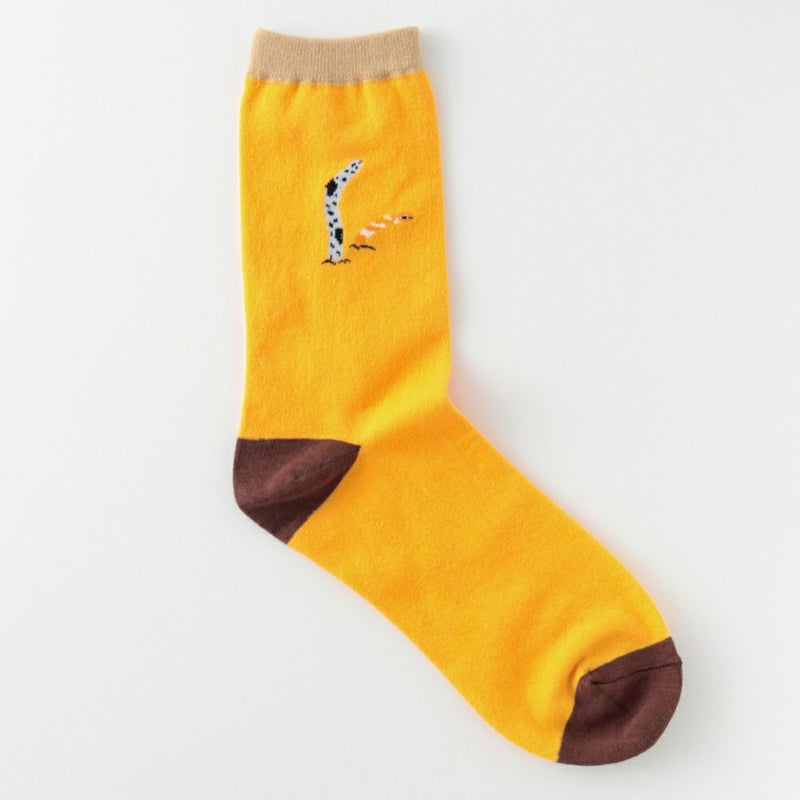 水族館、動物園の人気生物をかわいらしく描きおろしたシリーズ。ワンポイントの動物とカラフルな色合いがかわいい靴下です。