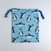 水族館、動物園の人気生物をかわいらしく描きおろしたシリーズ。大小2つがセットになった巾着袋。総柄とワンポイントのデザインがかわいい巾着セットです。