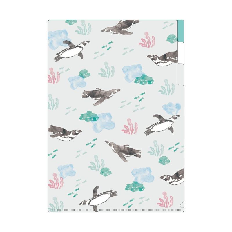 水族館、動物園の人気生物をかわいらしく描きおろしたシリーズ。ペンギンが水中を優雅に泳いでいる姿が愛くるしいA4サイズのクリアファイルです。3ポケットタイプなのでたっぷり収納できます。