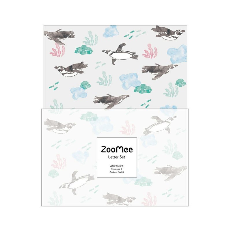 水族館、動物園の人気生物をかわいらしく描きおろしたシリーズ。ペンギンが水中を優雅に泳いでいる姿が愛くるしいレターセットです。